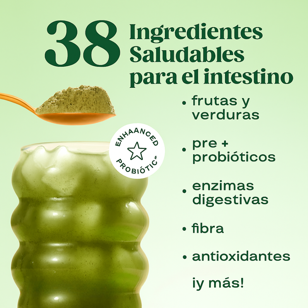 Un scoop con 30+ superfoods para sumar frutas, verduras y ENERGIA de forma práctica. Sin cafeína. Sin azúcar.