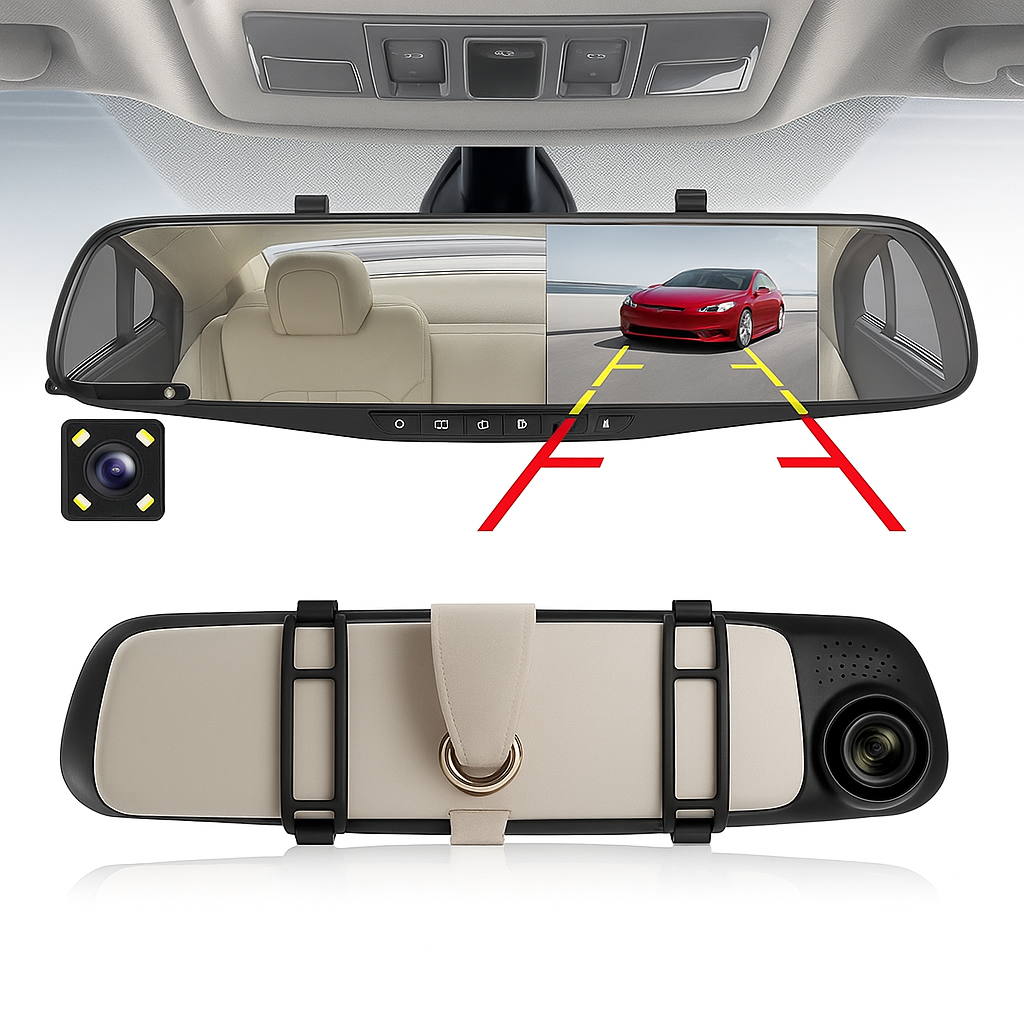 Este sistema avanzado reemplaza tu retrovisor tradicional con una pantalla de alta definición, proporcionando una visión clara y en tiempo real de lo que ocurre detrás de tu vehículo mientras graba todo lo que pasa.